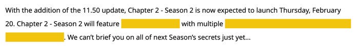 مہاکاوی کھیلوں نے 24 جنوری ، 2020 بلاگ پوسٹ میں باب 2 ، سیزن 2 کے لانچ کی تاریخ کی تصدیق کی. نیا سیزن شروع ہونے والا ہے جمعرات ، 20 فروری ، 2020.